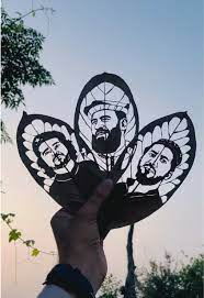 “A detailed dry brown leaf featuring the portrait of Awais Khan…”
